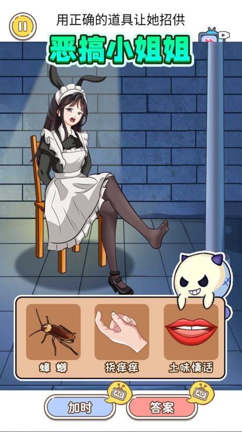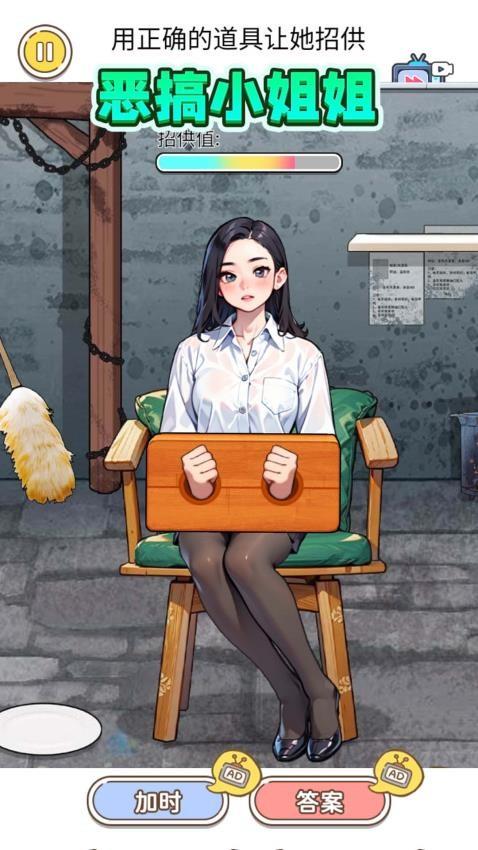 整蛊解压馆是一款非常好玩的休闲游戏。在游戏中你需确定关卡的主题要求,比如让人招供,及时确定适合的逼供方式,之后即可达到关卡目的。每个关卡之中你还会注意到必要的细节,进而可直接找到最适合的方法,还能轻松收获关联条件。在体验过程中你还可得到相应的提示内容,并且在多次通关之后能够得到经验效果,将其利用在适合的挑战环节中,能够很快让这个小姐姐招供。游戏还设计了相应的挑战要素,及时发现特定选择情况,最终可轻松突破各个考验阶段。如果你也对这款游戏感兴趣的话,不妨来试玩一下吧!