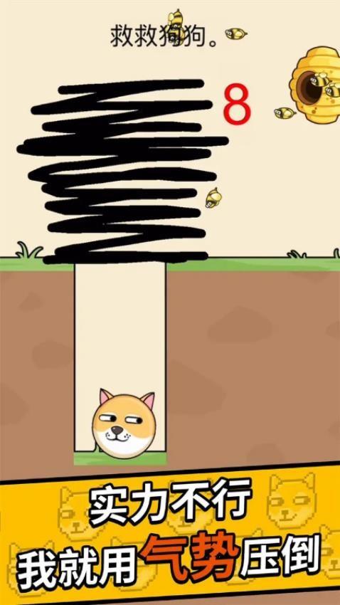 救救狗狗吧,只要画上线条就能抵御蜜蜂攻击!超魔性的烧脑闯关解谜游戏,手绘一些线条出来保护一个魔性的狗头不被伤害到。每个关卡里的小狗狗面临的危险是不一样的,考验您的脑力思维,观察关卡的挑战内容然后画出合适的线条。