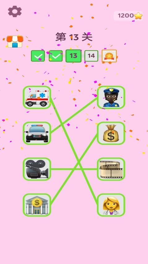 2、查看列中表情,依据情绪、事物关联等逻辑找关联,用线连接配对,完成全部配对解锁下一关。