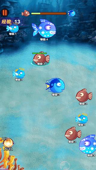 2、只要看到比自己的小鱼还要小的生物都可以直接吞噬,不会有太多的干扰出现,你也会得到许多优势。