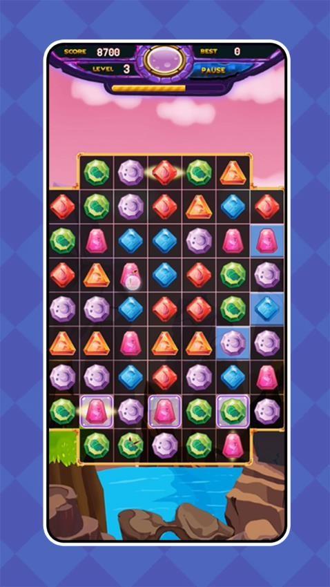 几何消消乐是一款好玩有趣的休闲类闯关游戏。游戏设计了相当精美的消除元素,其中包括了各种颜色形状的宝石,还会有其他的元素出现,你可不断地体验便可解锁全新类型。通过使用三消玩法方式,即可在关卡中尽快地消除各个元素,只要满足了相应的条件便可过关,没有太高的难度性。可以在一些机会之下尽量注意到相应的限定因素,进而可逐渐发现具体的挑战方法,可以节省更多的步骤,能够让自己获得超高分数。这里设定了不同的主题背景图,能够让你得到不同的视觉感受,尽情享玩这个游戏,下载之后便可直接体验。