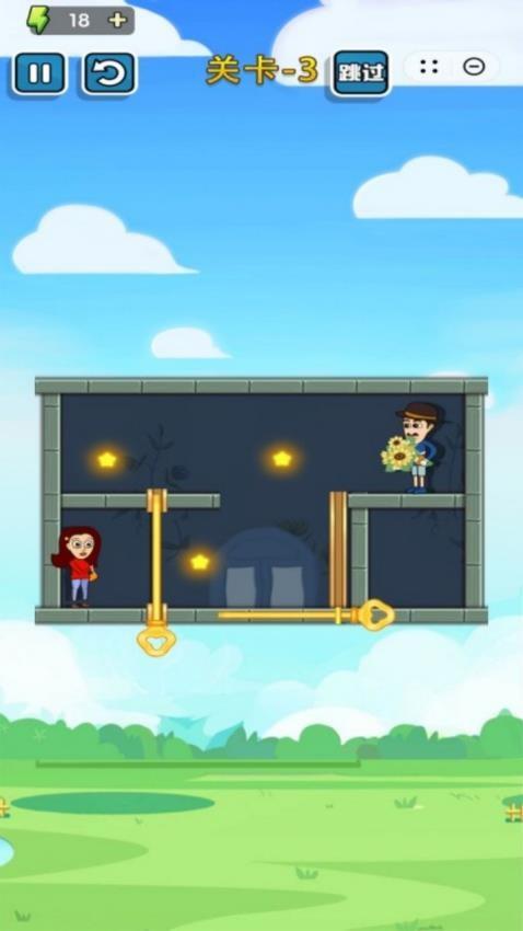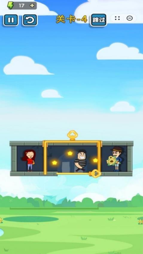 2、当坏人出现在你和她之间时,必须找到更合理的拔针顺序,可以让小偷直接掉落下去,助你成功。