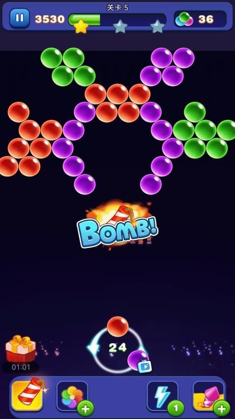 2、全部泡泡位置都要注意观察,任何位置的变化都会造成巨大影响,想要顺利过关必须根据相关信息调整发射。