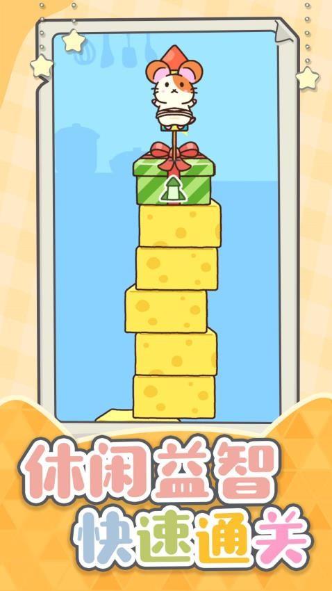 游戏主要围绕小仓鼠跳跃堆叠物品展开。玩家操控小仓鼠跳跃到不同的物品上进行堆叠。游戏中,玩家需把握好跳跃时机,让小仓鼠准确落在物品的合适位置,若小仓鼠掉落则游戏结束。