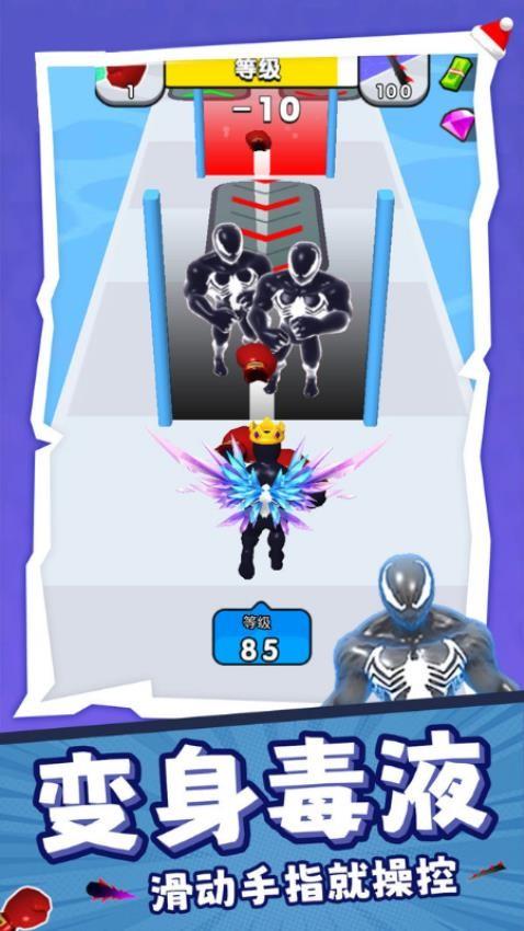 是一款以毒液人为主题打造的角色扮演类动作冒险游戏,游戏中玩家将会扮演一名毒液人,在关卡中进行战斗,游戏中拥有很多敌人,玩家作为毒液人,可以不断的吞噬敌人来获取各项资源。