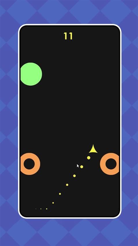 游戏采用极简鲜明的视觉风格,黄色主体拖曳的点状轨迹与彩色障碍物形成强烈视觉对比。玩家可通过反复挑战突破个人最高分记录,体验不断提升操作精度的成长乐趣。