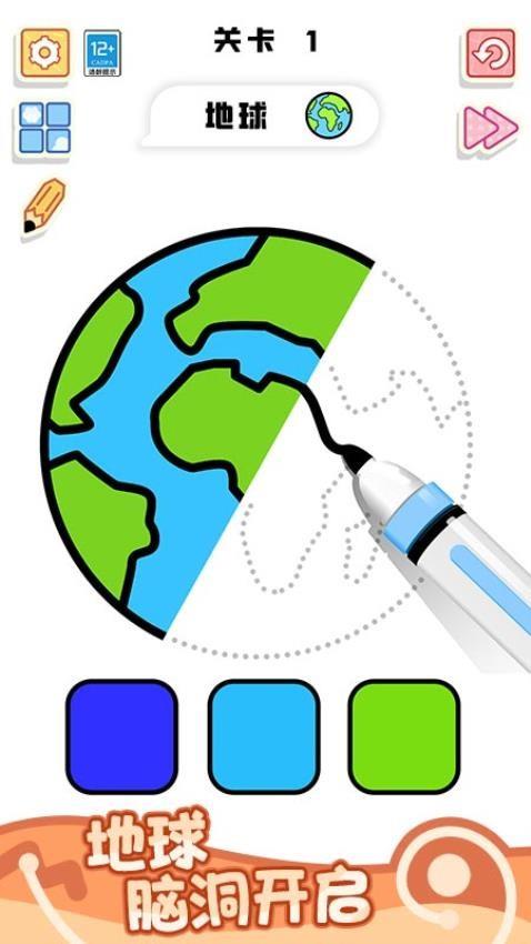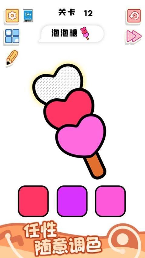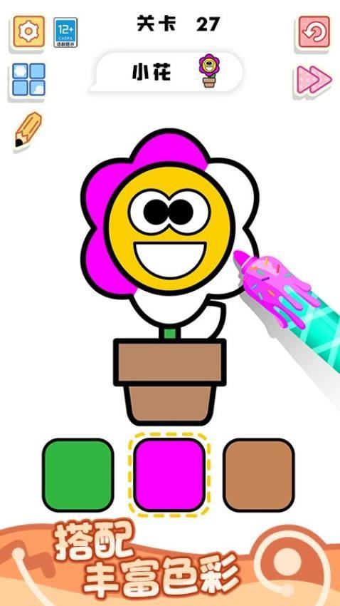 绘制的图像都会显示上色玩法,可以弹出三种颜色让玩家选择,自由选择一种颜色开始涂色。