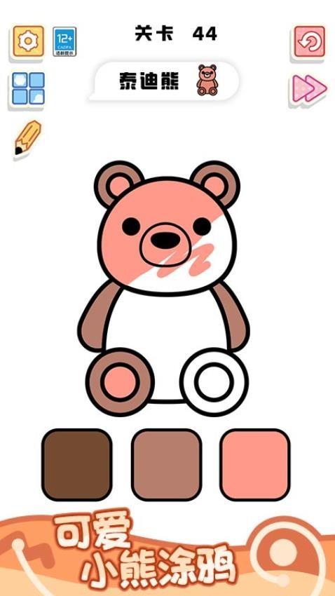 4、泰迪熊绘制界面,在游戏将玩偶的轮廓绘制出来,成功绘制泰迪熊就可以继续在底部选择颜色。