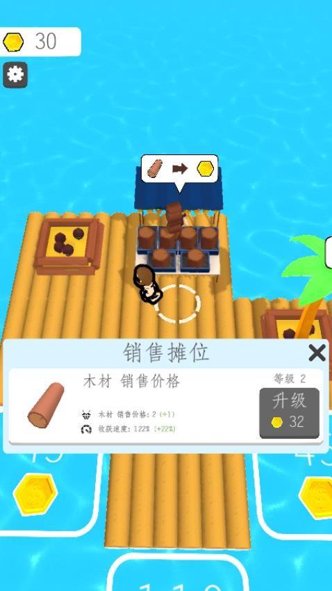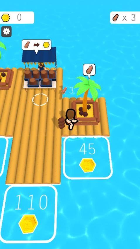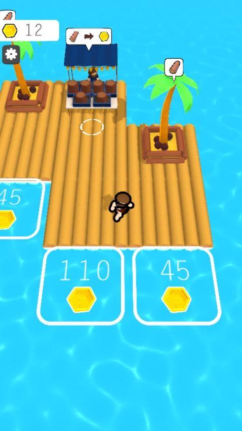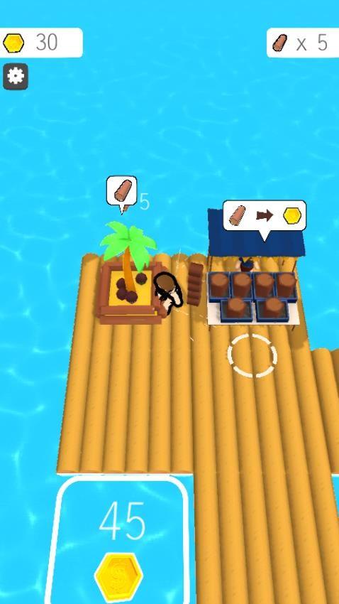 2、海岛木材砍伐出售获取金币,随着金币积累可以逐步打造豪华的木筏船只,以此提高整体生存质量与航行效率。