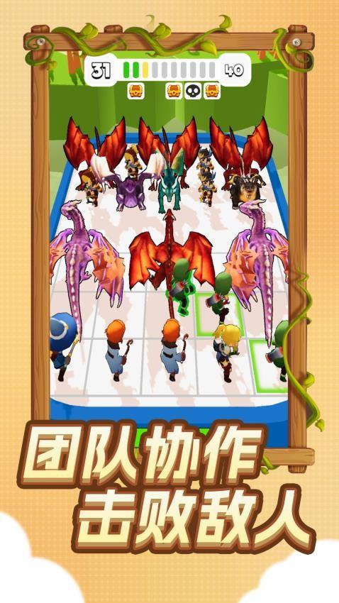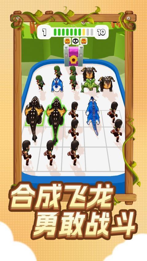 恐龙竞技场是一款趣味合成休闲游戏。玩家将通过闯关收集飞龙们与射手们,把相同单位合成为高阶的空中巨兽或神射手;带他们登上竞技台,以智谋布阵击败对手,赢取金币,获得稀有皮肤。并不断解锁新关卡、升级能力,打造属于你的飞龙军团。