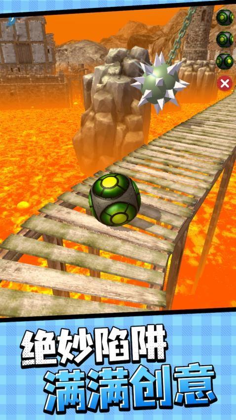 一款考验手速与反应的休闲闯关游戏,你将操控不同外观的球球,在摇晃的木桥、岩浆栈道等惊险关卡中滚动前进。途中需要躲避尖刺、障碍球等陷阱,保持平衡不坠入深渊。游戏支持球球换肤,在刺激的冒险过程中,你可以体验精准操控的乐趣与闯关的成就感。
