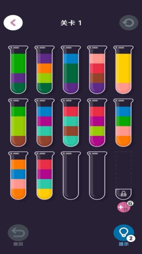 关卡提供很多杯子,你需要将相同的颜色放入单独的杯子,成功对颜色分类结束就可以通过关卡。