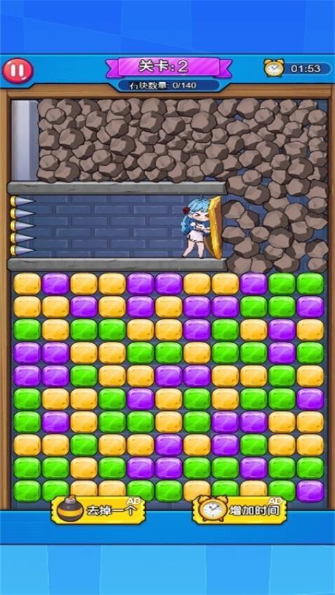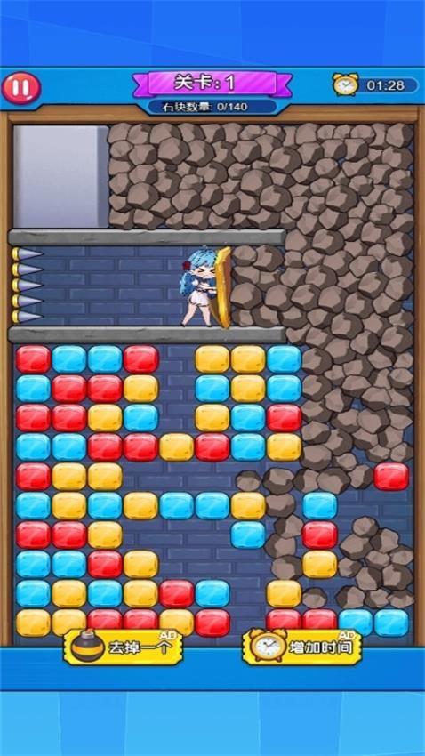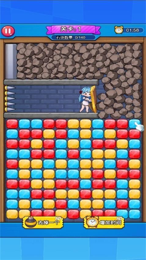 官方提供140石块,您需要在游戏界面不断消除石块才能完成挑战,体验紧张刺激的消除玩法。