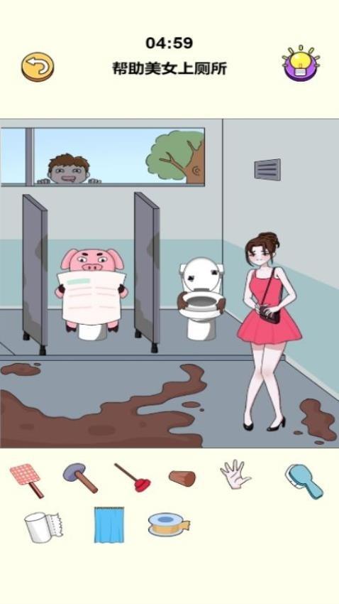 2、选择帮他上厕所游戏,显示很多游戏关卡,可以挑战10个关卡。