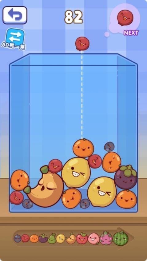 您只需要一直放入水果就可以自动合成,完全不需要操作其他内容,一直点击屏幕就一直放入水果。