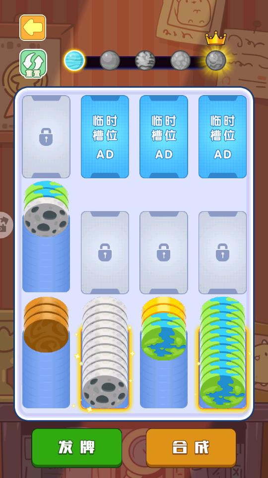 游戏提供八个槽位,让玩家可以轻松将不同星球的卡牌添加到空白的槽位上进行合成