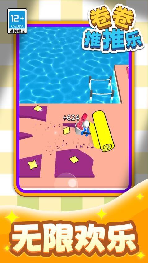 《卷卷推推乐》是一款休闲创意游戏,游戏中玩家拿着铲子,把地上铺的方块卷起来,然后铺成探索新大陆的新大路。快来《卷卷推推乐》体验下吧!