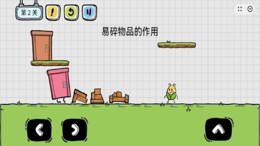 2、关注游戏所提供了相关的提示,比如方向,你需让这个苞米角色尽快到达粉色门所在的平台。