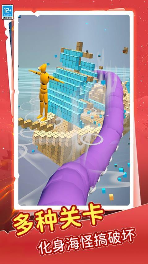 2、使用海怪的触手可以直接摧毁船只,便可让这些木偶人直接掉落到海中。