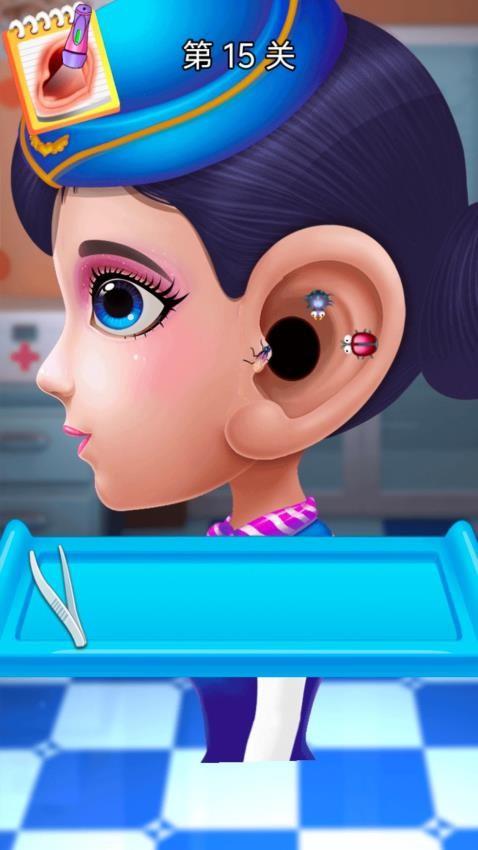 2、在这个空姐的耳朵上出现了不同的昆虫,比如七星瓢虫,你需使用镊子将它们一一揪下来。