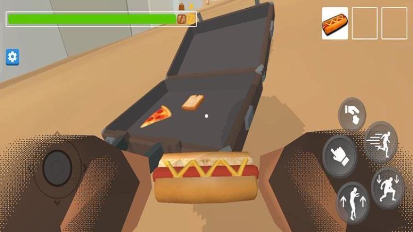 4、打开箱子之后,能够在里面发现披萨、面包片、热狗汉堡,直接吃掉便可补充能量。