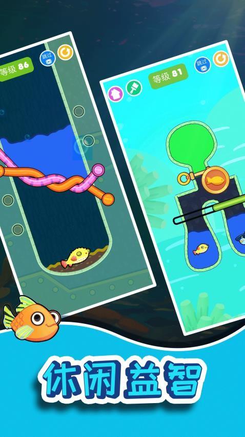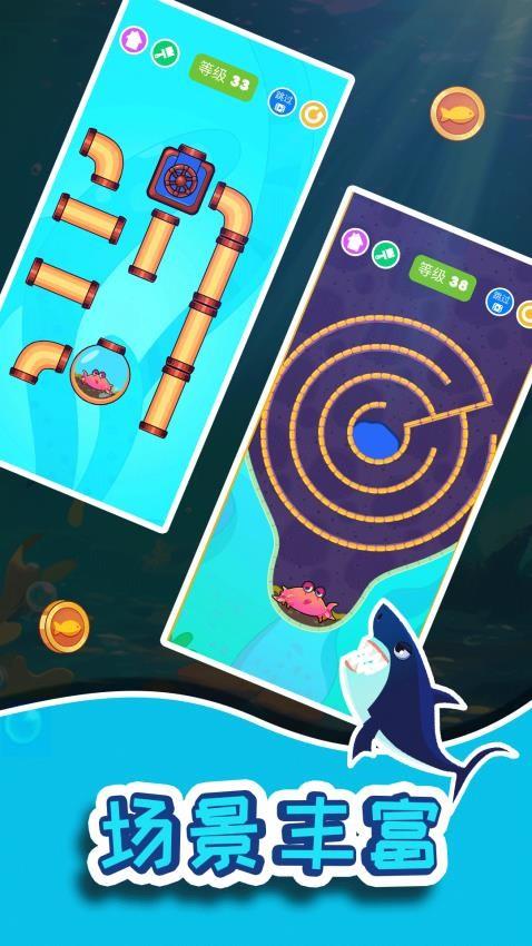 小鱼儿拯救行动是一款十分好玩的休闲解谜游戏。这款游戏设计了多种解谜形式,包括了割绳子、拔针、迷宫、修水管等等,需要在关卡中确定相应的挑战情况,即可为小鱼找到适合的救援方式。游戏将会提供各种比较复杂的元素布局,当你发现相关的信息之后,便可开始选择最佳的处理条件,以便能够逐渐收获理想的机会,最终可得到相应的解决效果。当小鱼在关卡中遇到了鲨鱼这样的敌人之后,必须关注它们之间的位置关联,便可找到阻拦鲨鱼的方法,给小鱼带来安全机会。如果你也对这款游戏感兴趣的话,赶快来体验吧!