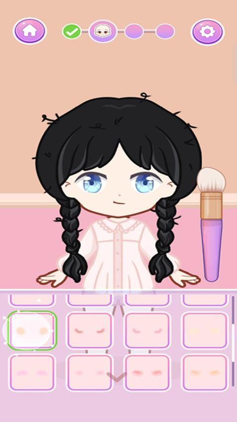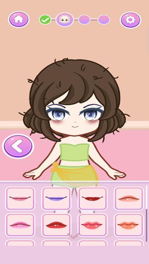 3、自定义化妆风格,为卡通娃娃选择不同的妆容和唇色,打造时尚妆容;