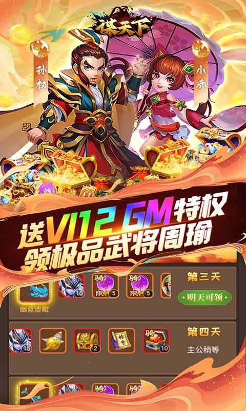 谋天下是一款是完全以三国历史为背景打造的策略卡牌类游戏。游戏采用经典的回合制战斗玩法开启精彩对决,上线还能领取丰富的福利礼包以及VIP等级,新人也能实现迅速养成闯关的趣味体验,随着VIP等级提升还能开启各式各样的特权和每周礼包,完全可以更加完美地置身于古战场之中,根本不会感受到任何枯燥和困难的情况,各大名将携手并肩作战应对不同敌人。高度还原的地图场景和战场灵活对抗,轻松点击培养神将提高整体胜率应对不同战场,还会呈现出多种技能组合带来全新作战效果,喜欢的朋友快来下载体验吧。