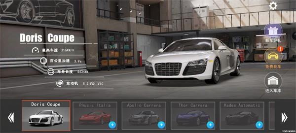 2、你可以从经典的城市轿车、现代轿车、炫酷跑车中任选一辆极速飙车体验。