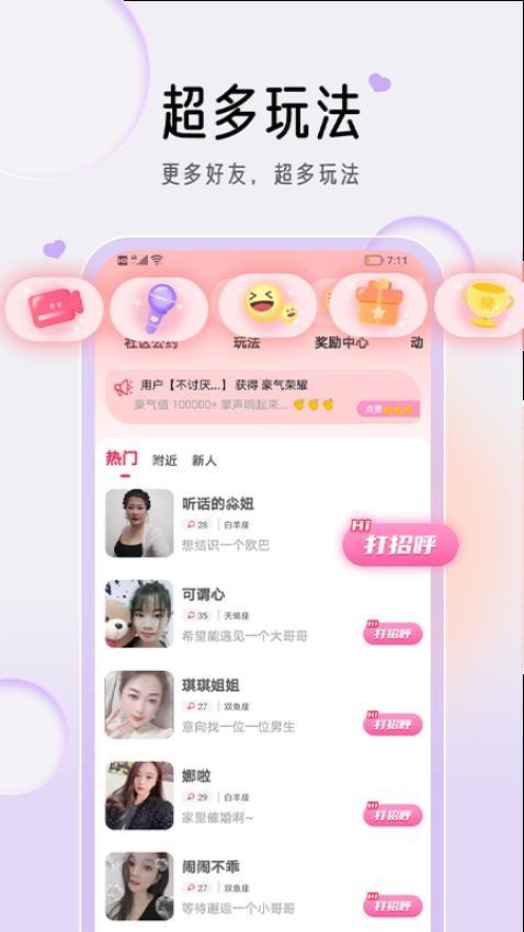 超多有趣的互动玩法供用户任意选择体验,为用户在线交友增添趣味。