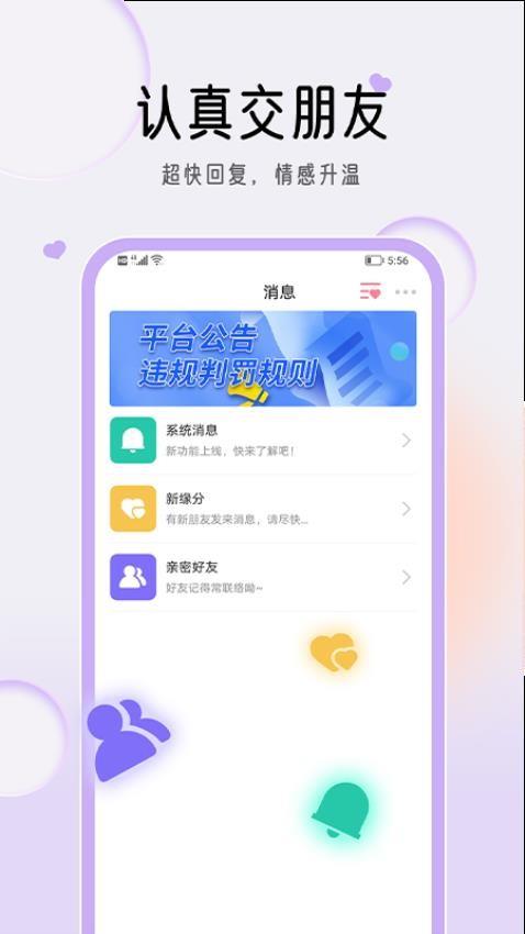 星约app官方版是一款非常实用、靠谱的社交软件。这款软件为想交新朋友的用户们提供了一个很好的平台,用户可随时在平台上和其他在线的人进行各样的聊天互动、快速破冰,结交与自己兴趣爱好相投的友人,非常的方便;平台里面汇集了很多优质的单身男女,用户可以通过平台便捷的邂逅自己的有缘人,早日摆脱单身的队伍行列。星约交友软件最新版里面还为用户提供了多样优质、好用的交友功能,助力用户进行更高效、便捷的线上聊天交友,提升用户社交体验。有需要的用户赶紧在本站下载这款软件体验吧!