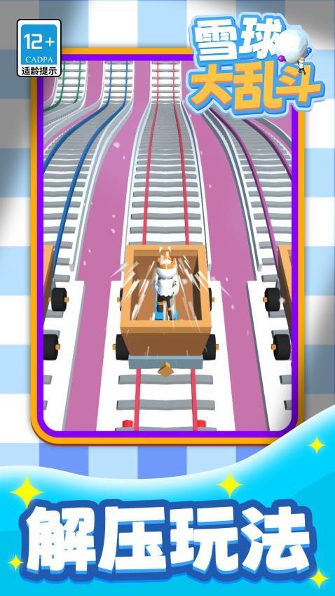 《雪球大乱斗》是一款休闲大乱斗游戏。游戏中,玩家将扮演火柴人与其他颜色的火柴人举行推雪球大乱斗,将推出来的大雪球铺到空空的架子上,铺成一条白雪的路,跑向终点,来取得这场大乱斗的胜利吧。