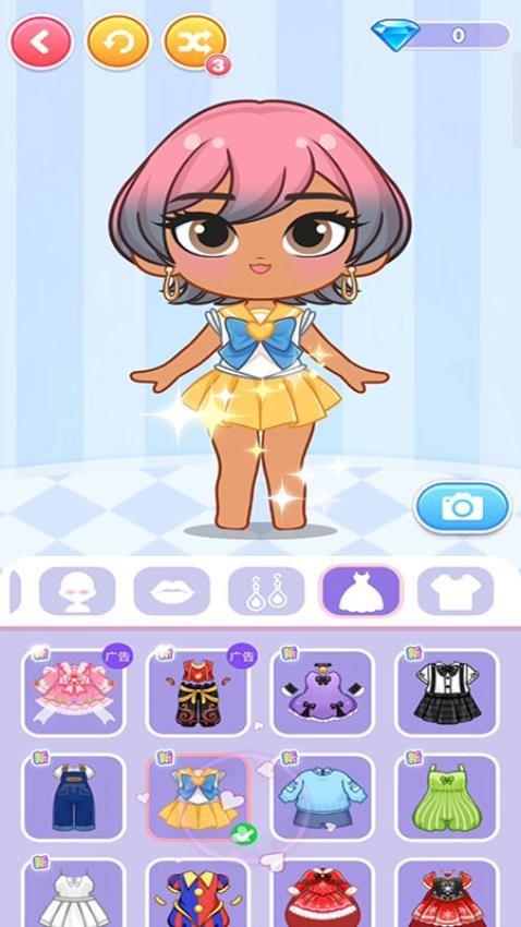 1、充满梦幻与时尚元素的换装搭配,化身为可爱少女进行全方位的服饰搭配,所有服装配饰都能挑选搭配。