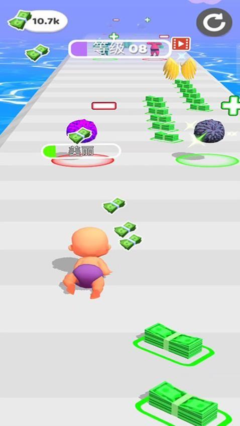 卡哇伊跑酷是一款充满童趣与活力的休闲跑酷游戏。游戏以简洁的地图道路与可爱的婴儿为主题打造,简单滑动屏幕就能控制角色奔跑前进,操控萌系的婴儿宝宝在简洁的场景之中奔跑跳跃,躲避障碍物与机关陷阱维持基本速度与安全即可抵达终点,也要拾取沿途的服装与金币道具,以此形成全新造型形象带来独特的视觉体验,并且积累的金币数量够多就能解锁新角色以及精美皮肤。时刻关注前方路况变化,任何道路的变化都要集中精力进行处理,争取能够最大程度解决所有复杂难题,这样才能成功完成关卡与玩法模式。