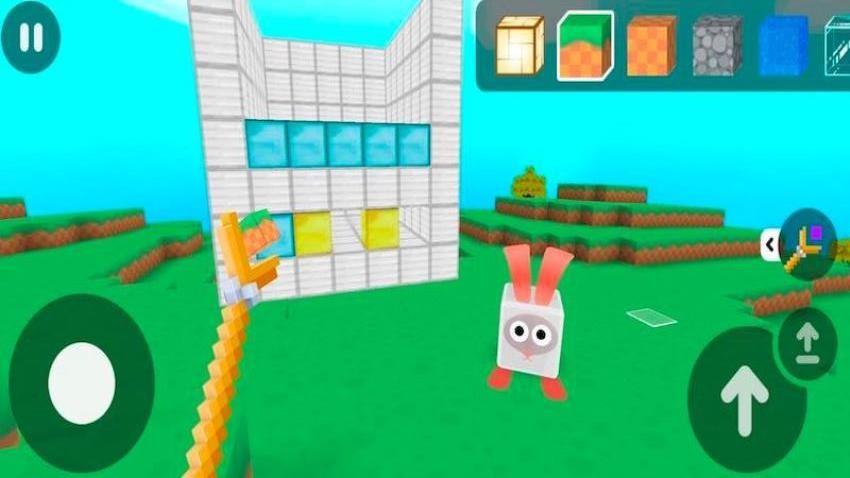 4、先通过左侧的圆形按钮控制角色移动,靠近目标方块后,点击屏幕中间的交互按钮,即可对目标方块进行破坏。