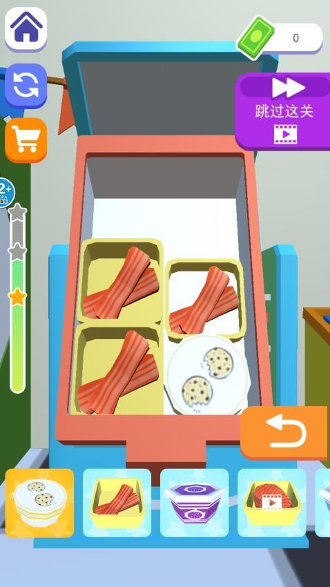 在关卡中你需关注冰箱的层数,才能将物品顺利地放入其中。