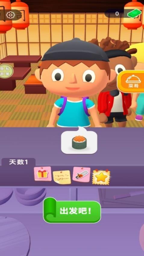 1、点击“出发吧”可进入到天数1的挑战关卡中,立即为顾客制作寿司;