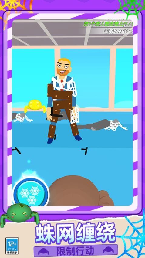一款充满趣味与挑战的游戏。你将操控一只神奇的蜘蛛,运用蛛网缠绕技能,限制敌人的行动。游戏内有多种场景和关卡,从室内到室外,面对不同的敌人,如持棍大汉、黑衣特工等,甚至还有超级BOSS等你挑战。