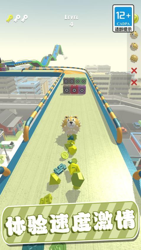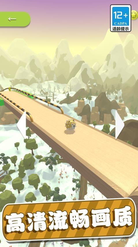 玩家操控球球在立体赛道上滚动前进,通过左右滑动屏幕控制球球的移动方向,躲避赛道上的障碍(如尖刺、齿轮、方块陷阱),同时收集沿途的金币、道具。