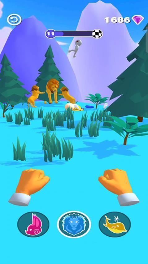 1、双手握紧拳头,点击狮子、鲸鱼、野猪这些动物,便可让它们冲向敌人