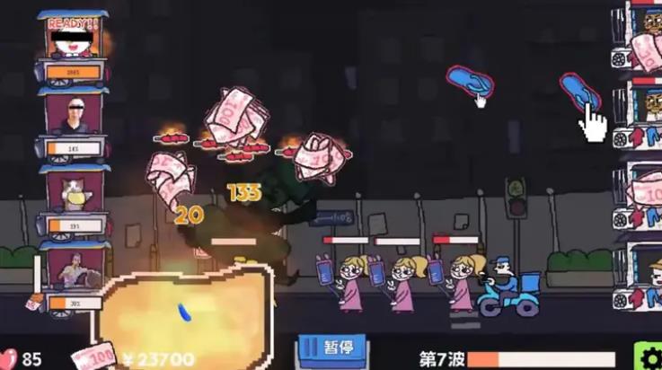 1、在这个塔防游戏里你屏幕左侧的主理人会尝试喂饱从右侧涌来的食客。如果让愤怒的食客把摊子拆了,那一切都完蛋了!