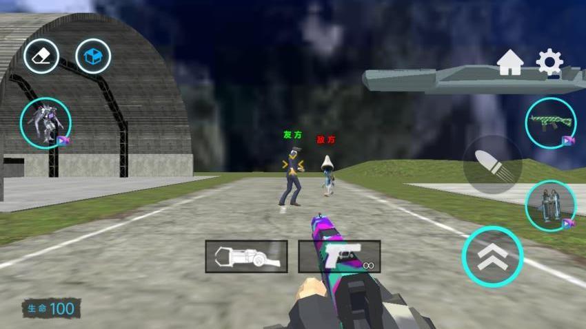4、将角色添加到沙盒世界就可以切换一个发令枪开始战斗,友方和敌方可以自动攻击