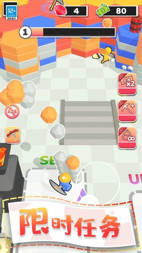 1、火速挖矿获取资源奖励,甚至挖掘就有机会发现宝石和黄金矿脉,这会带来极其丰富的金钱和钻石奖励。