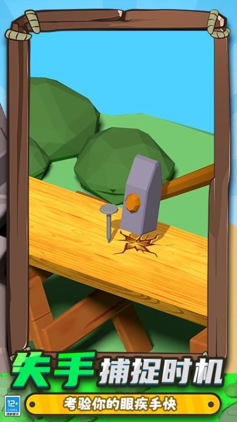 1、举起你的锤子,在不断向你运来的钉子砸下去,将他们砸进木板之中。