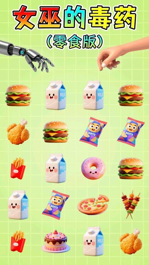 女巫毒药挑战手游是一款简单的判断类型游戏,进入游戏关卡就可以开始设置毒药物品,例如将汉堡设置为毒药,将炸鸡设置为毒药,对方也可以设置一个毒药的物品,随后双方开始依次选择食物,如果您选择了对方设置的毒药物品,挑战就会失败,如果对方选择了您设置的毒药物品,您就可以胜利,从而继续挑战下一个关卡,核心的玩法都是非常简单的,玩家需要合理使用策略,思考应该设置哪些食物为毒药才能让对方更容易选择该物品,这样才能提升获胜几率,官方也提供其他山海经游戏,全部游戏都免费使用。