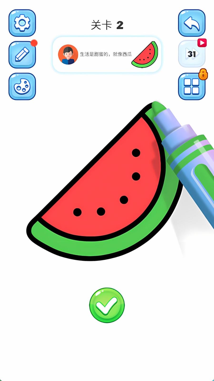 3、充分发现更为适合的情况,在涂色的时候你可尽快尝试收集相关的颜色,这样即可获得完整图画。