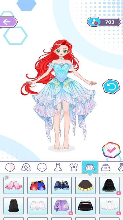 能够解锁更多的服饰种类,包括了衬衫、公主裙、百褶裙、礼服等等。