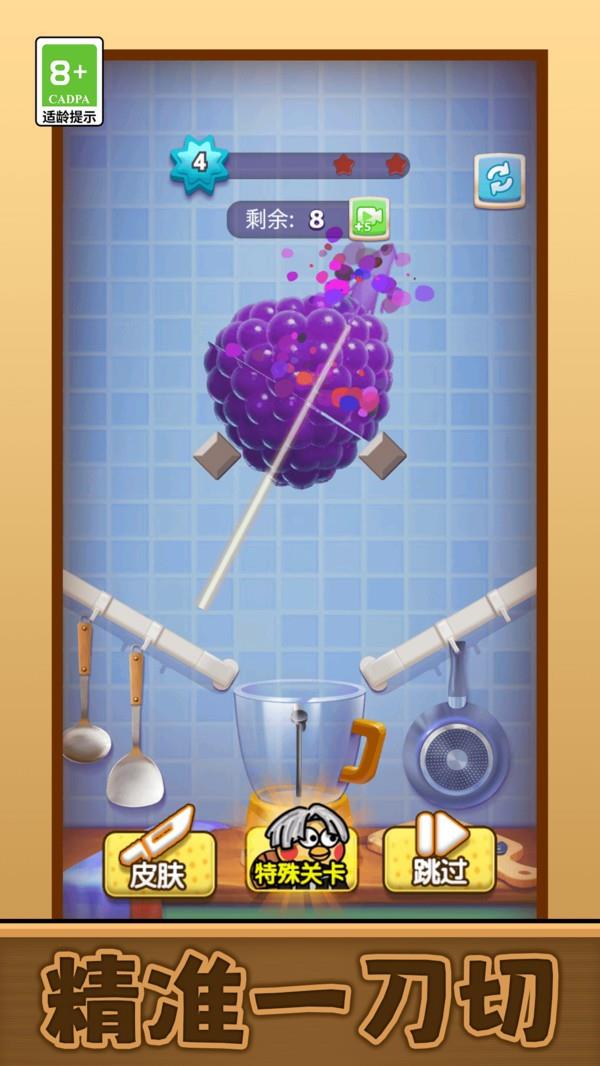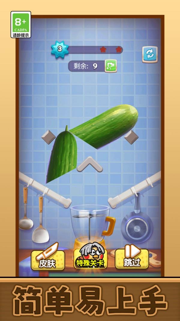 1、掌握具体的技巧之后,你可在关卡中逐步找到适合的策略方式,可以轻松将水果切成更适合的小块。