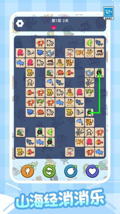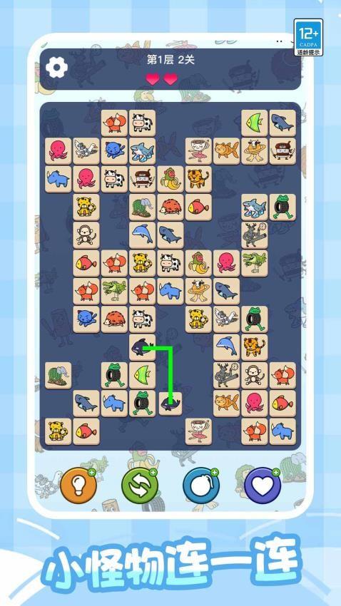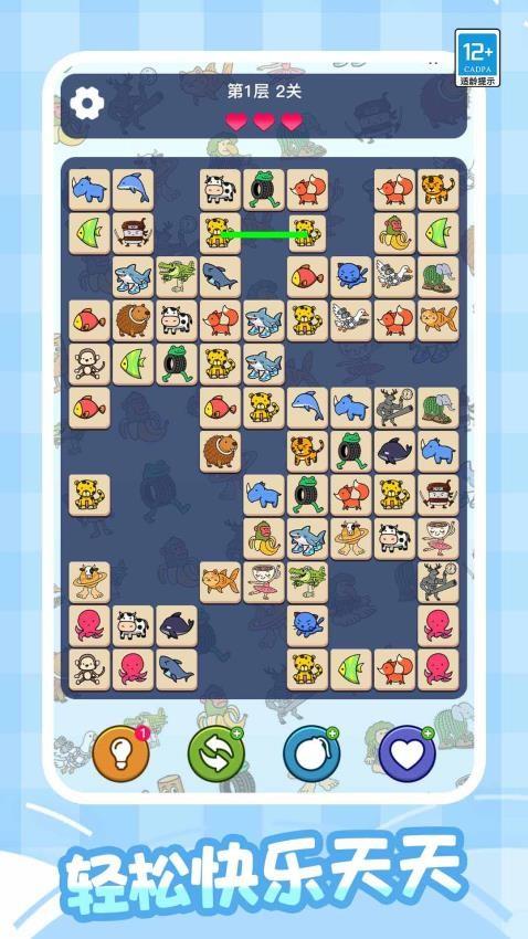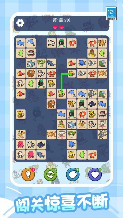 轻松连连看是一款非常好玩的休闲经典游戏。全图界面上你将看到许多不同的生物,只需找到同类元素即可消除,当然也要掌握具体的连接规则,只能出现两个连接折点,这样才能尽快消除。玩家在不同的层数之中将解锁不一样的关卡难度,而且其中所出现的关卡数量也会有所变化,你可在这里耐心处理各个问题。成功解决了相关的问题情况,还要尽快关注特殊的现象,玩家可逐渐发现其他的关联条件,还能持续收获各个特殊的优势细节,最终可得到连接机会,消除更多的动物。如果你也对这款游戏感兴趣的话,赶快来试玩吧!