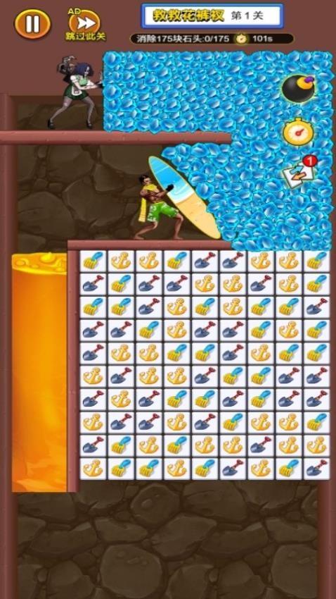 1、营救计划手游提供非常多的消除玩法,认真查看画面中的道具,找到同色道具位置